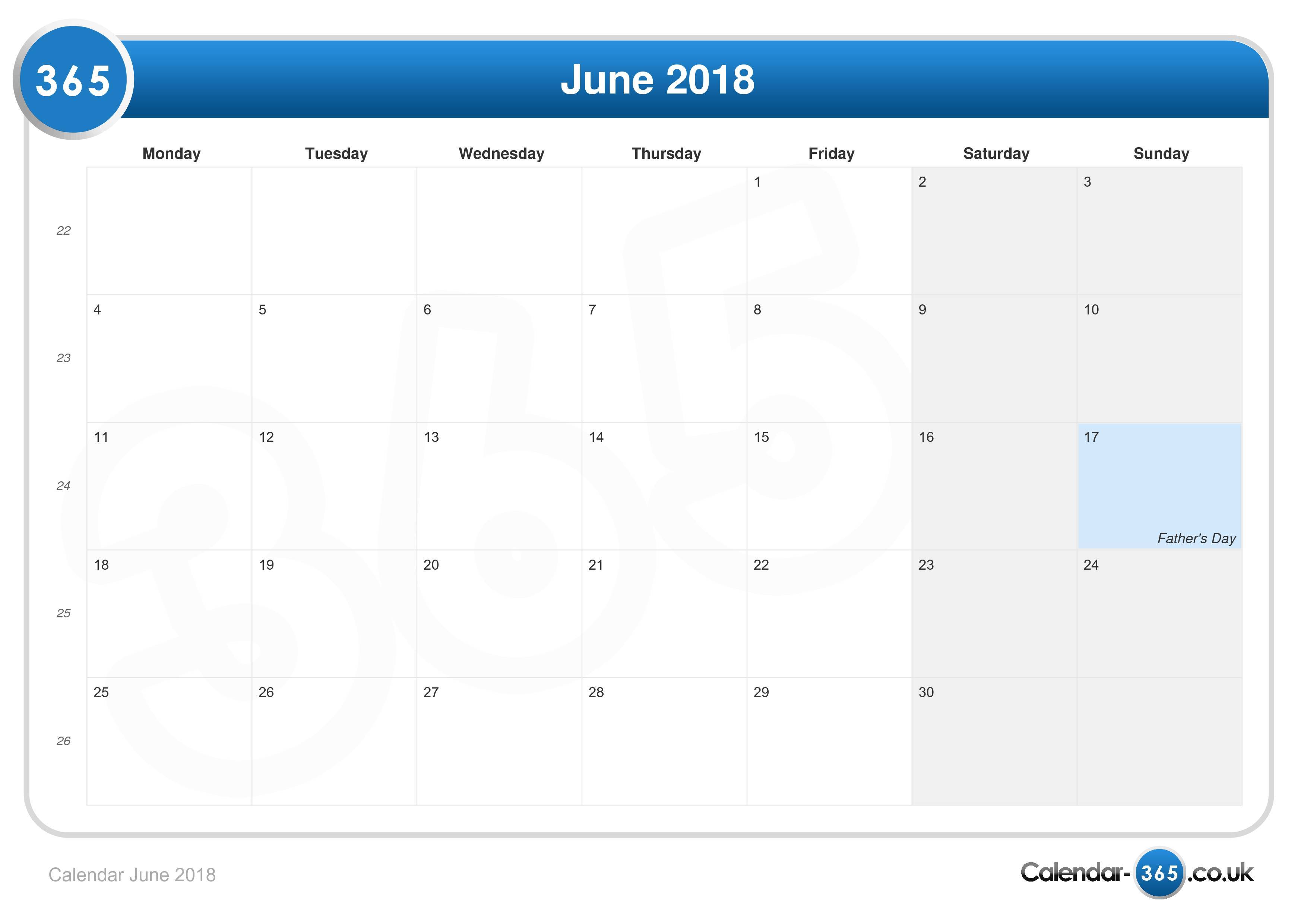 Calendar June 2018 (Landscape format)Go to Calendar 2018.